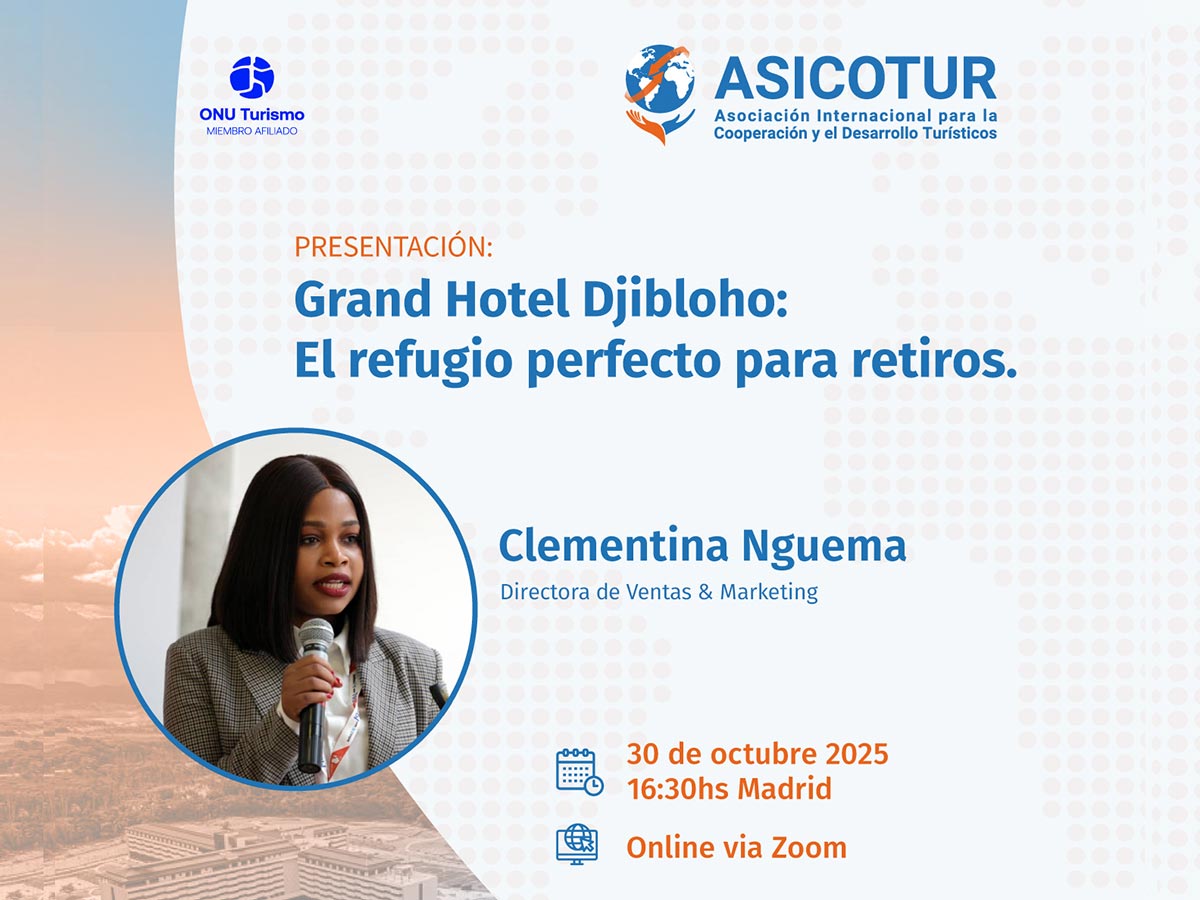 El 30 de octubre de 2025 a las 16:30 (hora de Madrid, España peninsular), nuestro Socio Protector, Grand Hotel Djibloho, ofrecerá una presentación exclusiva para miembros de ASICOTUR en modalidad online.