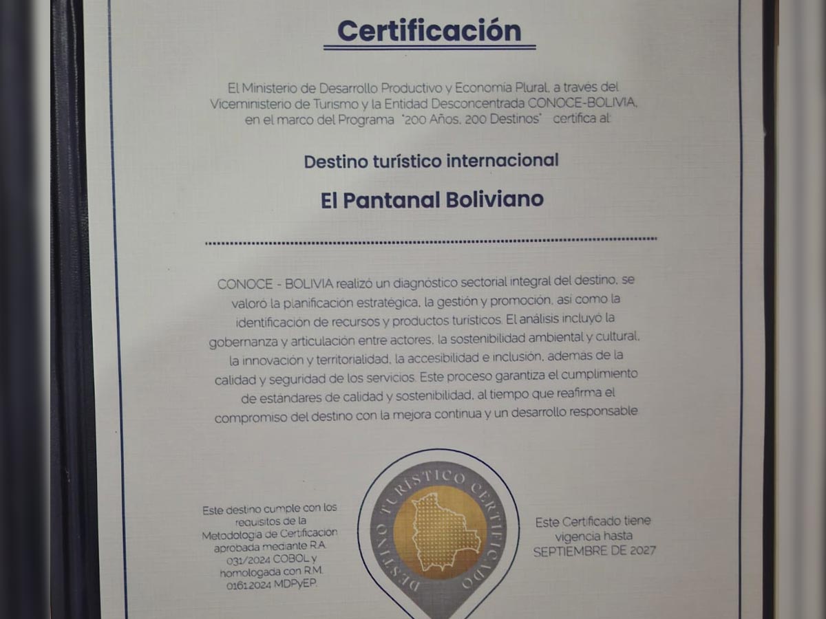 El Pantanal boliviano, reconocido como destino sostenible destacado